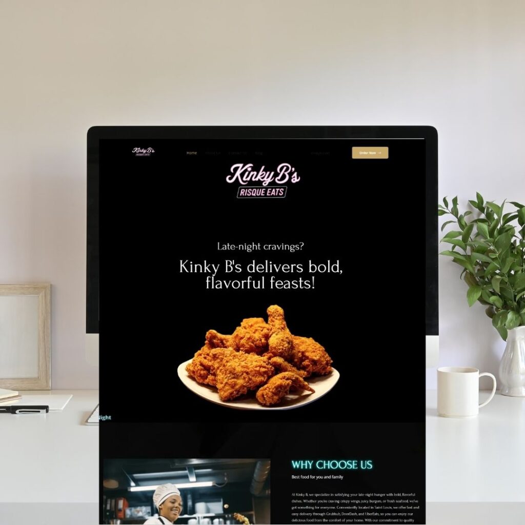 Kinky B’s is a cloud kitchen specializing in late-night food delivery, offering a delicious menu including wings, crab legs, and loaded potatoes. Located in St. Louis, MO, the brand needed a website to reflect its vibrant personality and streamline customer interaction.